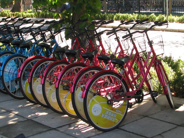 為了有效率地逛完這個校園,走路當然不可能的,所以和L商量,看看有沒有可能租個腳踏車,一邊悠哉得騎,一邊欣賞美景,其實也是頂愜意的,這時和L就看到對面有位大叔和大嬸用潦草的字,寫著腳踏車出租的牌子,向他們問了價錢,其實價錢並不算便宜,但是車子看起來實在是不怎麼樣,但是竟然還要押金100RMB,試騎了一下,最離譜的是我騎的那輛藍色的腳踏車,竟然是煞車失靈的,讓我覺得我根本就是來清大Cosplay的,扮的是摩登原始人裏的那位佛林史東,因為和他一樣都需要雙腳來煞車!但在沒有其他選擇的情況下,也只好將就點。