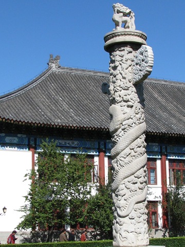 下面的照片就是清華大學的校長辦公室,很有古色古香的感覺吧!由下面的照片中也可以看出,這清華大學內一些古董建築,也是和北京其他的古建築有一樣的問題:需要維護,雖說看起來有些破舊,顯不出當年親王府的精緻和奢華,但是原來建築物的氣魄,還是可以顯現出來,雖不像故宮那樣氣勢逼人,但是你可以感受當時親王府的尊貴和典雅,整體上還是很漂亮。因為星期一到星期五要辦公,不對外開放參觀,只能由門口用鏡頭往內拍攝,不過雖然是這樣還是覺得很美!在這個優美的環境辦公,不知是不是也應該要長袍馬褂、羽扇綸巾來匹配?