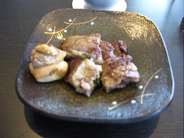下面就是我那少得可憐的鐵板燒:等我看到自己的餐點,差點昏倒!看到旁邊的人點的一般套餐的分量,大約是我的兩三倍,心中真是悔恨,不過已經太遲了。不過以滋味來說,還是應該給予正面的評價,牛肉和雞肉都煎得很嫩、很可口。