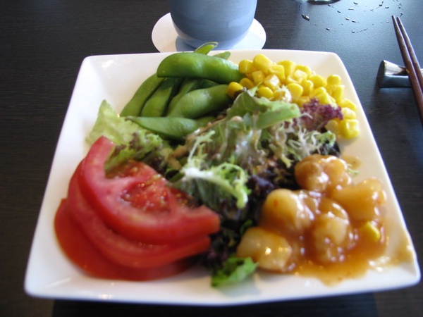 沙拉吧是可以吃到飽的,下面的沙拉,我配色配得還不錯吧!不過也真得滿好吃,右下角的是味增螺肉還滿軟Q,不會硬硬的,不知道是怎麼做出來的。另外,還有溫泉蛋也不錯吃,但是我忘了照了。