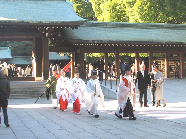 在逛明治神宮的時候,剛剛好遇上一個傳統日式婚禮的舉行,在明治神宮這邊辦一場婚禮可不便宜,你如果仔細看那雙方新人家屬的和服,就可以知道那絕對是所費不貲!對於日本人對傳統的堅持和執著,心中很感佩,至少在台灣,我沒看過有哪對新人是採用傳統儀式結婚,大家對自己文化的遺忘速度,就和我們經濟發展的速度一樣快,怕只怕有一天,我們連自己是誰都不認識了。
