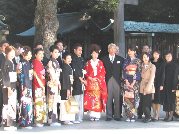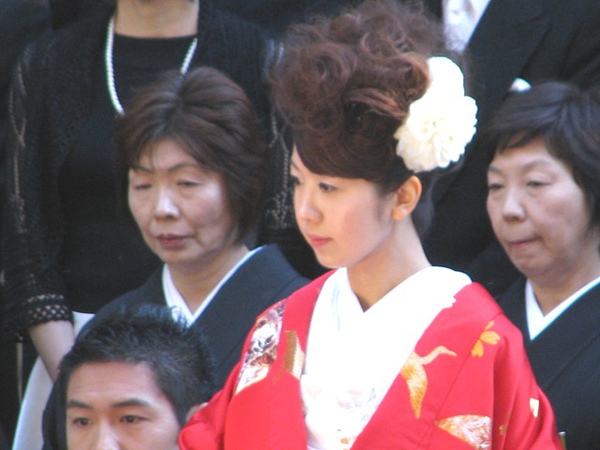 會注意到這個婚禮,當然是因為有美麗的新娘,如果是隻恐龍結婚,我應該按不下快門,畢竟食色性也,這也不能怪我,不過其實,上面右邊算來第四位的和服姑娘,也是很漂亮,不知是新娘的誰,看起來也是青春美麗,不過上面的照片有點小,大家看不出來就是了,請自行發揮想像力吧!上面的那些和服作工的精細,可能要現場親眼見到,才能體會,這家人應該非富即貴吧!不過不知道,為什麼會選擇日式的婚禮,這可能就要請對日本習俗比較熟習的人來解答了。