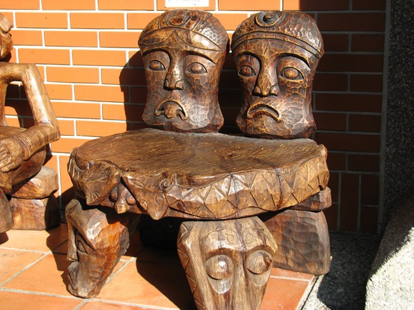 吃過早餐後,就驅車前往國立傳統藝術中心,在入口的地方,擺設了一些有趣的原住民木雕椅,這每一個椅子都有自己的意涵,後面有這些椅子意涵的說明,所以就不要用我那只有一層樓那麼高的藝術水平,為大家一一解說了。