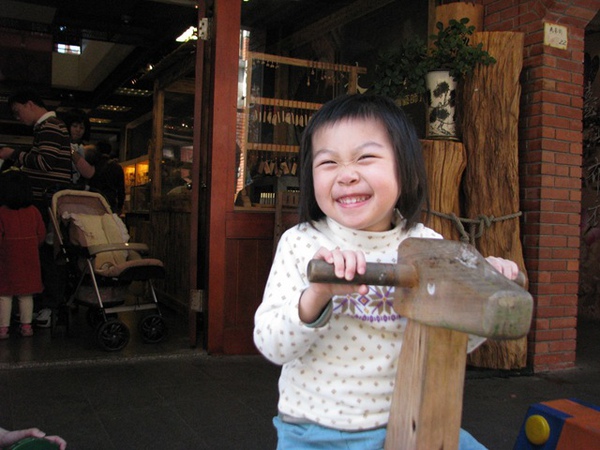 我那頑皮的小姪女!騎著木馬露出猙獰頑皮的表情,是不是很可愛呢?