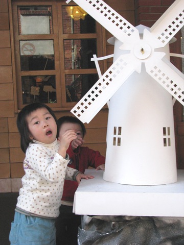 千萬別以為這兩個小孩很可愛,一付人畜無害的模樣,這兩個小孩皮起來,可真是讓大家都忙得團團轉嘞!我那時就是一時不察,落入這兩個可愛小惡魔的陷阱,把他們高高舉起,玩"飛飛"……