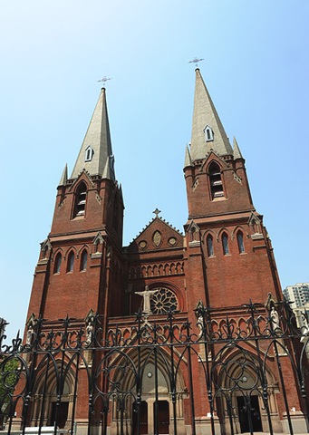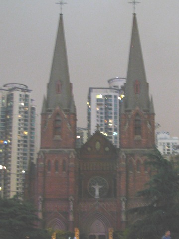 下面的照片是位於徐匯區的匯聖依納爵主教座堂,這是一座哥德式的羅馬天主教堂,不過走到這邊時,已經天色暗了,所以照出來的效果不是太好,但這教堂真是很漂亮,在1920年代,還曾被譽為上海第一建築,前陣子好像還曾在哪一部MV中出現過!不過很可惜的是,它並沒有逃過那場中國的文化的浩劫,在文革時代破四舊的浪潮下,也受到了嚴重的破壞,雖然後來經過了修復,目前教堂內的管風琴已經不在,用得是電子琴,還真是有點給它濫竽充數的感覺。