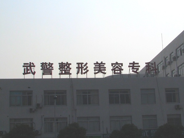 大陸的武警的福利還不錯,有專屬的醫院,跟我們的軍人有三軍醫院一樣,相較起來,台灣的警察,好像就沒這等福利,但武警醫院,這我能明白,但右邊這個招牌:武警整形美容專科,可就有點讓人傻眼了,難道武警長得特抱歉,亦或是武警和演藝人員一樣,特需要注重外表,所以武警特別需要整形美容?還有專科專整武警……