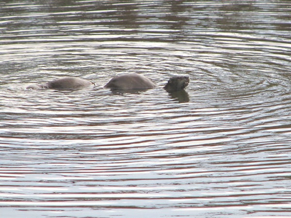 校園裏的小河 在游泳的水獺