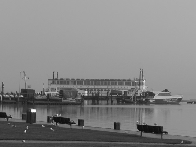 等待乘客的郵輪和水上飛機。