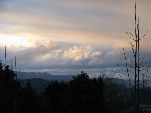 Waitomo找Motel時掛在天邊的彩虹和夕陽,雖然那時烏雲滿天,但還會是有彩虹滴。