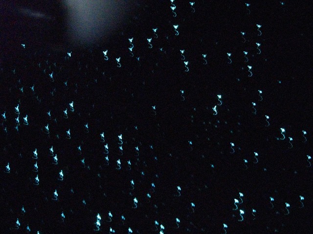如果滿天都是Glowing Worm,那就跟星空一樣的美麗,右邊的照片,是導遊旋轉橡皮艇時,杯子照下來的。