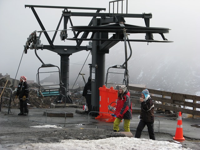 下面的機器是造雪機,因為現在已經是春天了,為了維持划雪場地有足夠厚度的雪,必須使用造雪機來維持,所以你可以想像為什麼這個世界會暖化…….